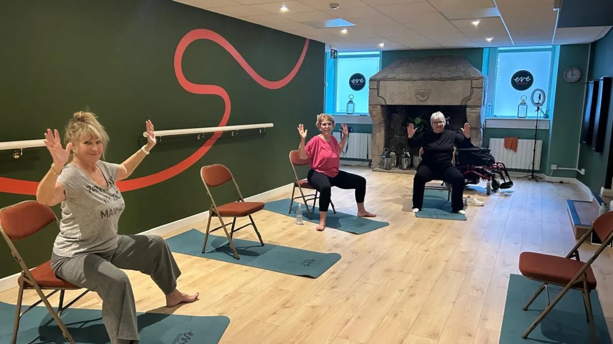 Chair Yoga is a gentle, accessible class using chairs for support, perfect for improving flexibility, balance and overall wellbeing at any age or ability.