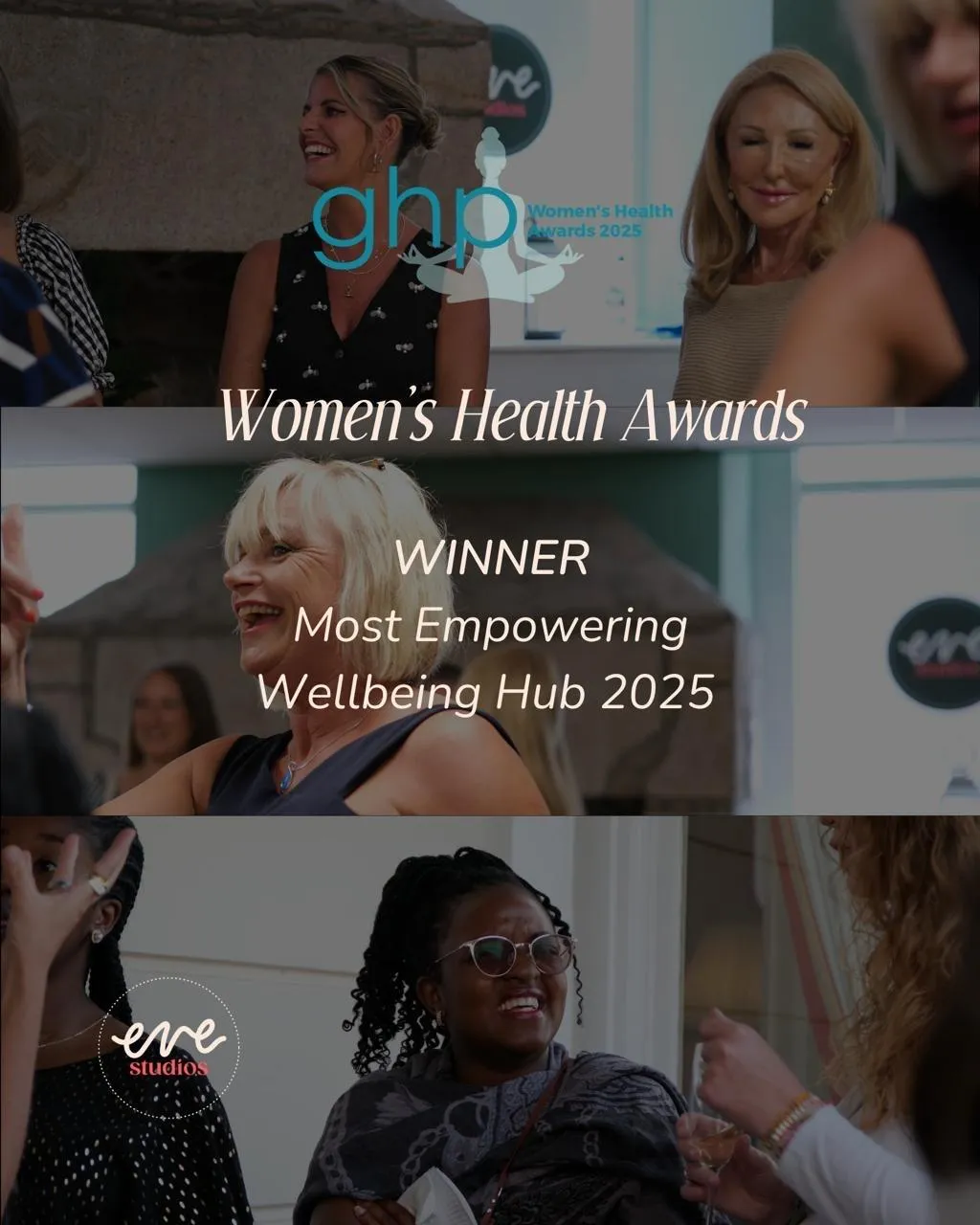 We are incredibly proud to share that Eve Studios has been named Winner of Most Empowering Wellbeing Hub 2025 at the Women’s Health Awards. This award recognises our commitment to creating a space where women of all ages feel supported, seen, and empowered in their health and wellbeing journey. It is a celebration of our community, our team, and every woman who walks through our doors.